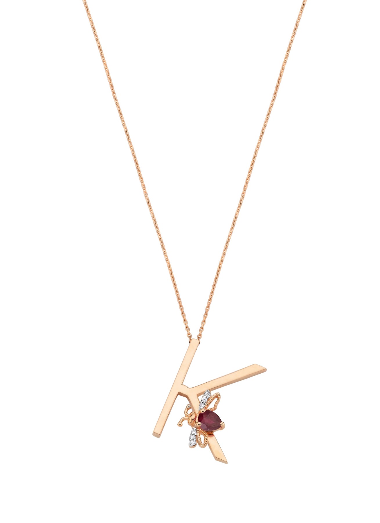 LETTER K GOLD RUBY DIAMOND NECKLACE